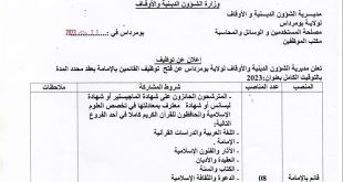 أكمل القراءة »اعلان توظيف بمديرية الشؤون الدينية والاوقاف لولاية بومرداس