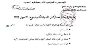 أكمل القراءة »اعلان عن فتح مسابقة وطنية للالتحاق بالتكوين في الطور الثاني المدرسة الوطنية العليا للعلوم السياسية