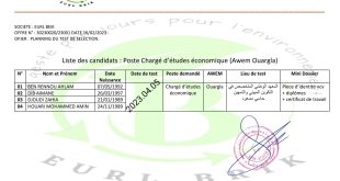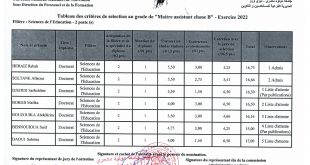 Voici les résultats du concours de recrutement pour l’accès au grade de Maître-Assistant classe B au titre de l’exercice 2022. ads Agronomie Architecture Automatique Chimie Droit Electromécanique Ecologie et Environnement Géologie des Ressources Minérales Géologie Structurale Géologie des Bassins Sédimentaires Génie Mécanique Electronique Electrotechnique …