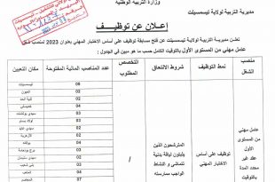 أكمل القراءة »اعلان عن توظيف بمديرية التربية لولاية تيسمسيلت (83 منصب)
