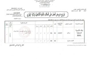 وزارة العمل والتشغيل والضمان الاجتماعي الوكالة الوطنية للتشغيل الفرع الولائي للتشغيل تندوف الملحقة المحلية للتشغيل تندوف ads عرض عمل الهيئة المستخدمة: البنك التنمية المحلية BDL الملاحظاتالعددالشهادات أو الشروط المطلوبةالمناصب المطلوبةChargé de l’opération agence01Diplôme licence ou master sciences de gestion / commerce économique/Assistant commerciale01Diplôme licence …