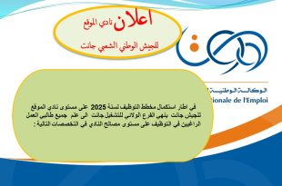 نادي الموقع للجيش الوطني الشعبي جانت ads إعلان في إطار استكمال مخطط التوظيف لسنة 2025 على مستوى نادي الموقع للجيش جانت، ينهي الفرع الولائي للتشغيل جانت إلى علم جميع طالبي العمل الراغبين في التوظيف على مستوى مصالح النادي في التخصصات التالية: إعلان عن فتح …