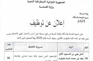 إعلان عن مسابقة توظيف بمديرية الصحة والسكان لولاية المسيلة