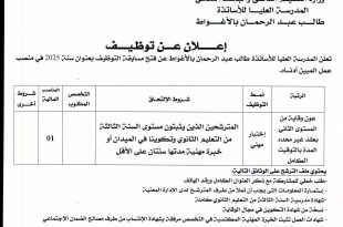 إعلان عن توظيف بالمدرسة العليا للأساتذة طالب عبد الرحمان الأغواط
