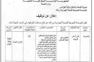 إعلان عن توظيف بالمؤسسة العمومية للصحة الجوارية بزرالدة