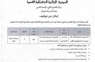 إعلان عن توظيف بجامعة أحمد زبانة غليزان