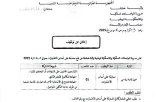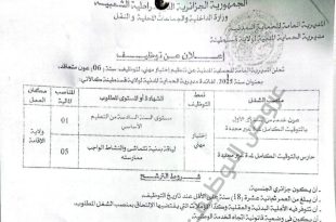 أكمل القراءة »إعلان عن توظيف بمديرية المواصلات السلكية واللاسلكية الوطنية