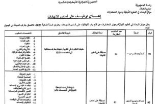 أكمل القراءة »إعلان عن مسابقة توظيف على أساس الشهادات بجامعة تيسمسيلت