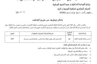وزارة الأشغال العمومية والمنشآت القاعدية الديوان الوطني للإشارة البحرية ads إعلان عن توظيف ينظم الديوان الوطني للإشارة البحرية اختباراً مهنياً للالتحاق بالمنصب التالي: المنصب أو الرتبةنمط التوظيفشروط الالتحاق بالمنصبعدد المناصب المفتوحةمقر التعيينسائق سيارة من المستوى الثاني.إختبار مهنيالمترشحين الذين لديهم رخصة سياقة (وزن ثقيل) أو …