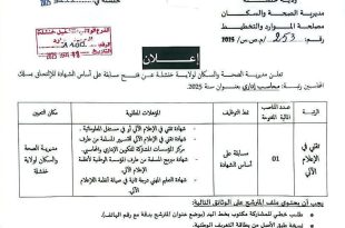 وزارة التربية الوطنية مديرية التربية لولاية المدية مصلحة التمدرس والامتحانات مكتب الامتحانات والمسابقات ads إعلان عن مسابقة توظيف تنظم مديرية التربية لولاية المدية مسابقة على أساس الشهادة للالتحاق بالرتب التالية المذكورة في الجدول أدناه: الرتبةعدد المناصبالشهادة المطلوبة للمشاركة من بين المرشحين الحائزين على:مساعد وثائقي …