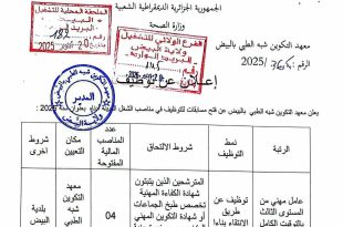 أكمل القراءة »اعلان عن توظيف بمعهد التكوين شبه الطبي البيض