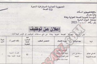 أكمل القراءة »اعلان عن توظيف بالمؤسسة العمومية للصحة الجوارية بزهانة معسكر