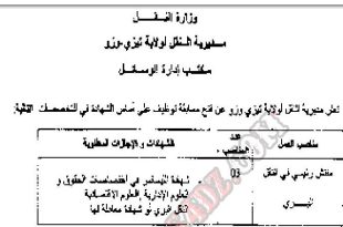 اعلان عن توظيف بمديرية النقل لولاية تيزي وزو