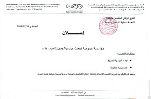 أكمل القراءة »مؤسسة عمومية تبحث عن مرشحين للتوظيف: