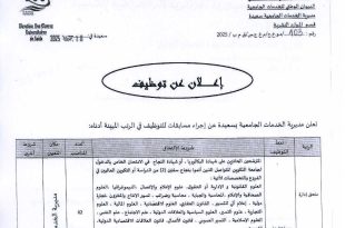 أكمل القراءة »إعلان عن مسابقات توظيف على أساس الشهادات للالتحاق بسلك الأساتذة المساعدين رتبة: أستاذ مساعد