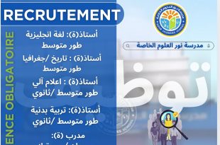 أكمل القراءة »اعلان عن توظيف اساتذة في عدة مواد وموظف متعدد الخدمات