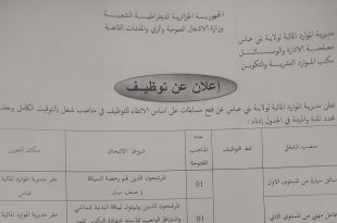 اعلان توظيف بمديرية الموارد المائية لولاية بني عباس