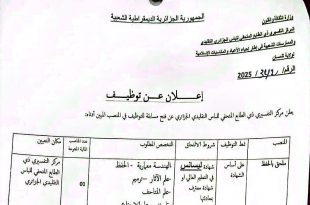 أكمل القراءة »إعلان عن توظيف بمركز التحضيري ذي الطابع المتحفي للباس الجزائري التقليدي