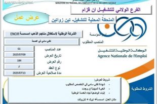 وزارة العمل و التشغيل و الضمان الاجتماعي الفرع الولائي للتشغيل ان قزام الملحقة المحلية للتشغيل -تين زواتين ads المؤسسة: الشركة الوطنية لإستغلال مناجم الذهب امسمسة ENOR المنصب المطلوب: تقني سامي في الصحة عدد المناصب: 01 تاريخ العرض: 2025/07/09 رقم العرض: 184 مدة صلاحية العرض: …
