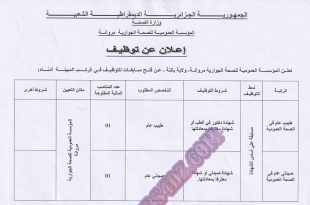 أكمل القراءة »اعلان توظيف بالمؤسسة العمومية للصحة الجوارية مروانة ولاية باتنة