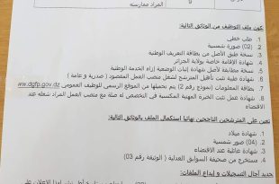 اعلان عن توظيف المؤسسة العمومية للصحة الجوارية عشعاشة مستغانم ads تعلن المؤسسة العمومية للصحة الجوارية عشعاشة مستغانم عن فتح توظيف على اساس الشهادة للالتحاق بالرتبة التالية طبيب عام في الصحة العمومية عدد المناصب : 05 نمط التوظيف على اساس الشهادة تاريخ نشر الاعلان 22 …