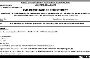 اعلان توظيف بالمؤسسة العمومية للصحة الجوارية عشعاشة مستغانم