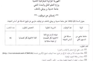 إعلان عن توظيف بجامعة حسيبة بن بوعلي بالشلف