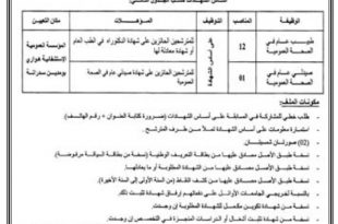 تعلن المؤسسة العمومية الاستشفائية ششار المستشفى الجديد خنشلة عن فتح مسابقة توظيف على اساس الشهادة في المناصب التالية ads مهندس دولة في الاعلام الالي نمط التوظيف مسابقة على اساس الشهادة عدد المناصب 01 مهندس دولة في الاحصاء نمط التوظيف مسابقة على اساس الشهادة عدد …