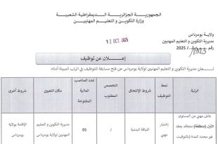 إعلان عن مسابقة توظيف بمديرية التكوين والتعليم المهنيين لولاية بومرداس