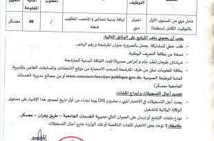 تعلن مديرية الخدمات الجامعية لولاية معسكر عن فتح مسابقة توظيف في مناصب الشغل التالية ads عامل مهني من المستوى الاول بالتوقيت الكامل منظفة عدد المناصب 08 نمط التوظيف اختبار مهني تاريخ النشر : 21 نوفمبر 2021 آخر أجل لوضع الملفات : بعد 20 يوم …