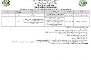 وزارة التعليم العالي و البحث العلمي جامعة قاصدي مرباح ورقلة ads إعلان عن توظيف خارجي تعلن جامعة قاصدي مرباح ورقلة عن فتح مسابقات للتوظيف بعنوان سنة 2025 للإلتحاق بالرتب المبينة أدناه: الرتبةنمط التوظيفشروط الالتحاقالتخصص المطلوبعدد المناصب المفتوحةشروط أخرىمهندس دولة في الإعلام الآليعلى أساس الاختبارالمترشحون …