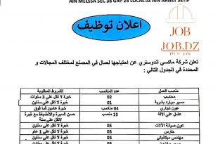 اعلان توظيف ads تعلن شركة ماكسي اندوستري عن إحتياجها لعمال في المصنع لمختلف المجالات و المحددة في الجدول التالي: منصب العملعدد المناصبالشروط المطلوبةمحاسب02خبرة لا تقل عن 3 سنواتمسير موارد بشرية01خبرة لا تقل عن سنتينعون تجاري04 مناصبخبرة عامين فما فوقعامل على آلة15 منصبحسن السيرة والإنضباط …