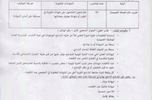 تعلن المؤسسة العمومية للصحة الجوارية ببني حواء ولاية الشلف عن فتح مسابقة من اجل التوظيف الخارجي على اساس الشهادات للالتحاق بالاختصاصات التالية ads طبيب عام للصحة العمومية عدد المناصب 01 نمط التوظيف مسابقة على اساس الشهادة مهندس دولة في الاعلام الالي عدد المناصب 01 …