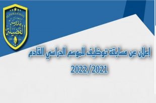 تعلن مدرسة الفضيلة عن فتح مسابقة التوظيف للموسم الدراسي الجديد 2022/2021 في المناصب التالية : ads ادارة -أعوان إداريين .أساتذة لغة عربية طور الإبتدائي .أساتذة لغة فرنسية طورين الإبتدائي و المتوسط .أخصائيين نفسانيين .أخصائيين نطق .منصب محاسب .طباخة و مساعدة طباخة .للراغبين في المشاركة …