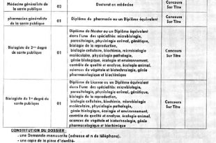 تعلن ادارة المؤسسة العمومية الاستشفائية اولاد جلال عن اجراء مسابقة للتوظيف خاصة بالرتب المبينة ادناه ads طبيب عام في الصحة العمومية عدد المناصب 04 نمط التوظيف مسابقة على اساس الشهادة صيدلي عام في الصحة العمومية عدد المناصب 01 نمط التوظيف مسابقة على اساس الشهادة …