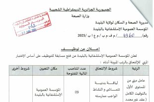 أكمل القراءة »إعلان عن توظيف في المؤسسة العمومية الإستشفائية بالبليدة