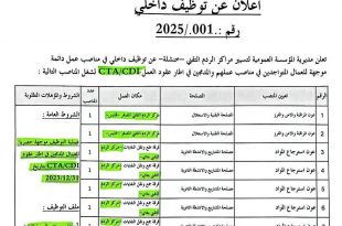 ولاية خنشلة المؤسسة العمومية لتسيير مراكز الردم التقني ads خنشلة في: 2025/06/18 إعلان عن توظيف داخلي تعلن مديرية المؤسسة العمومية لتسيير مراكز الردم التقني -خنشلة- عن توظيف داخلي في مناصب عمل دائمة موجهة للعمال المتواجدين في مناصب عملهم والمندمجين في إطار عقود عمل CTA/CDI …
