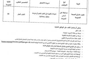 تعلن المؤسسة العمومية الاستشفائية بغريس ولاية معسكر عن توظيف على اساس الشهادة في المناصب التالية ads طبيب عام في الصحة العمومية عدد المناصب 02 نمط التوظيف مسابقة على اساس الشهادة تاريخ الاعلان 5 ماي 2021 اخر اجل لايداع الملفات 15 يوم من تاريخ الاعلان