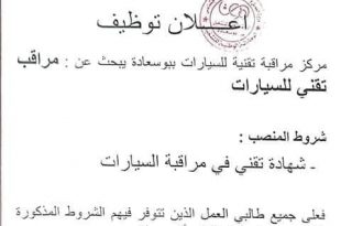 اعلان توظيف بمركز مراقبة تقنية للسيارات ببوسعادة