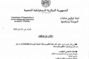 لجنة تنظيم عمليات البورصة ومراقبتها ads إعلان عن توظيف في إطار تعزيز فرق عملها، تُعلن لجنة تنظيم ومراقبة عمليات البورصة (COSOB) عن فتح باب الترشح لتوظيف مكلفين بالدراسات. الملف الشخصي المطلوب: شهادة ماستر في أحد التخصصات التالية: السوق المالية الاقتصاد، الاقتصاد القياسي المحاسبة التدقيق …