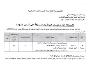 أكمل القراءة »إعلان عن توظيف في جامعة الشهيد الشيخ العربي التبسي تبسة