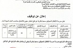 أكمل القراءة »اعلان عن توظيف في مدرسة الأطفال المعوقين سمعيا بكارية