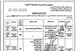 وزارة العمل و التشغيل و الضمان الاجتماعي الوكالة الوطنية للتشغيل الفرع الولائي للتشغيل – سعيدة الملحقة المحلية للتشغيل – سعيدة ads إعلان سعيدة في: 14 ماي 2025 تعلم طالب العمل حامل شهادة مهندس دولة في الهندسة الفلاحية (مفتش في العلوم الفلاحية) التقرب من مقر …
