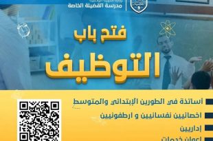 أكمل القراءة »فتح توظيف أساتذة في الطورين الابتدائي والمتوسط (جميع المواد) أخصائيين نفسيين إداريين وأعوان خدمات
