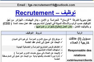 اعلان عن توظيف شركة فرسان للحراسة و الأمن – بدار البيضاء- الجزائر ads تعلن مديرية الشركة “فرسان” للحراسة و الأمن – بدار البيضاء – الجزائر عن أجل توظيف حسب الرتب والأسلاك المبينة في الجدول أدناه بموجب عقد عمل محدد المدة (CDD) وبالتوقيت الكامل – …