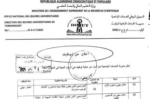 وزارة العمل والتشغيل والضمان الاجتماعي الوكالة الوطنية للتشغيل الملحقة المحلية للتشغيل بالجلفة ads مسعد في: 2025/05/04 إعلان مؤسسة عمومية تبحث عن المرشحين في المناصب التالية مع توفر الإقامة بقاعدة الحياة: 1/ نادل SERVEUR شروط المنصب: حامل شهادة في المجال الفندقة – خبرة مهنية في …