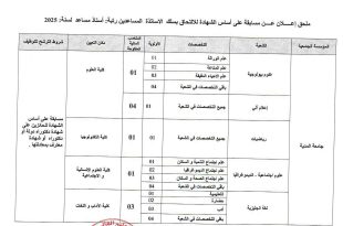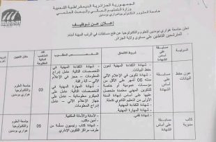 أكمل القراءة »إعلان عن مسابقات توظيف على أساس الشهادة للالتحاق بسلك الأساتذة المساعدين رتبة استاذ مساعد
