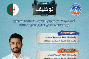 أكمل القراءة »اعلان عن فتح باب التوظيف للأساتذة المتعاقدين في الطورين المتوسط والثانوي