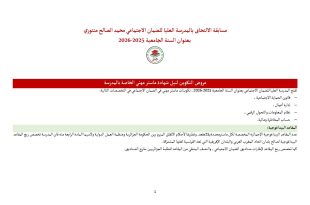 وزارة التربية الوطنية مديرية التربية لتلمسان ثانوية محمداوي احمد – بني بوسعيد ads السنة الدراسية: 2026/2025 إعــــــلان الموضوع: ب/خ منصب شاغر في مادة الرياضيات. تعلن ثانوية الشهيد محمداوي أحمد عن شغور منصب الرياضيات و تدعو الحاصلين على شهادة الماستر في الرياضيات التقدم الى الثانوية …