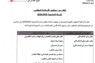أكمل القراءة »اعلان عن توظيف الأساتذة المؤقتتين للسنة الجامعية 2025/2026